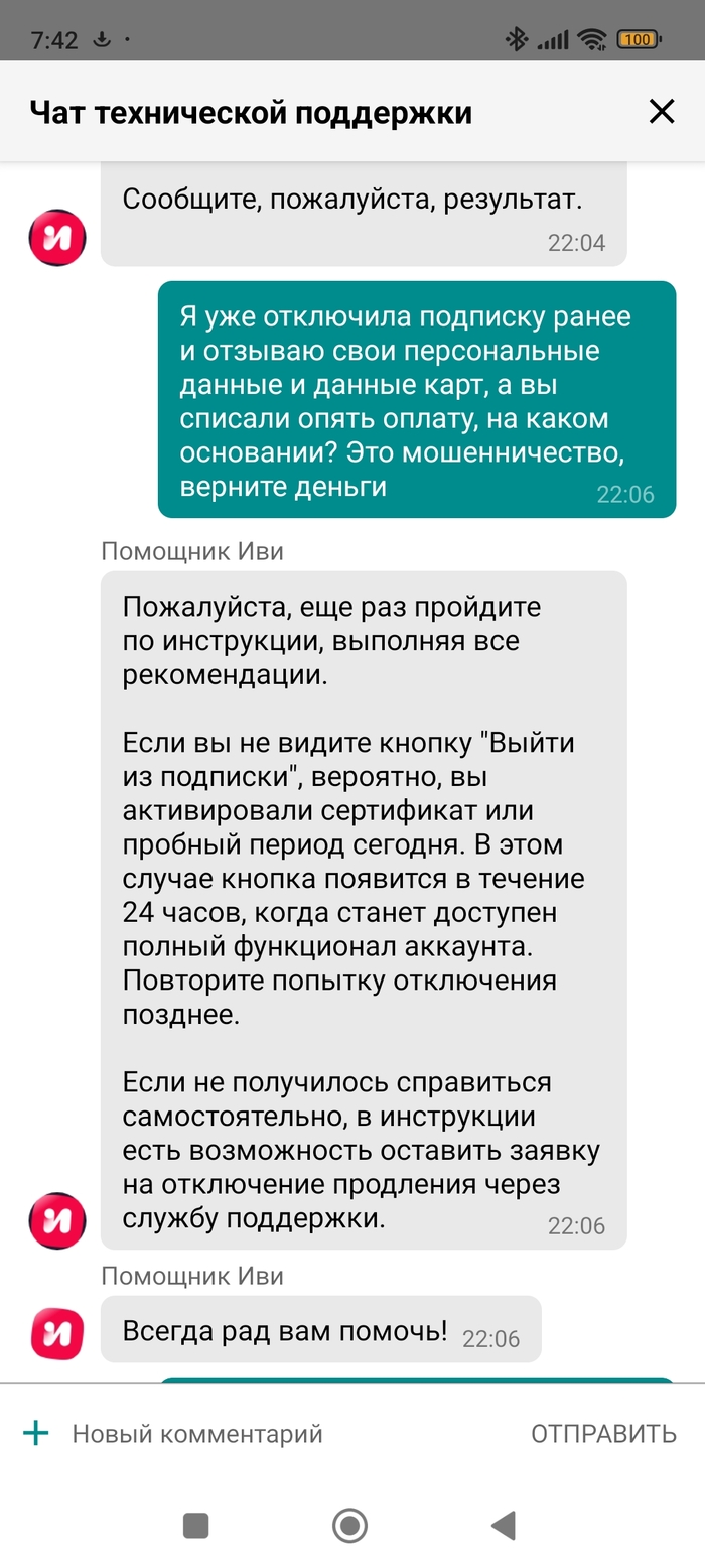 у меня была подписка, которая истекла 16.04.2025 года, и я от нее отказалась полностью (как я думала), протупив и не удалив из личного кабинета данные карты, с которой оплачивала ранее подписку.