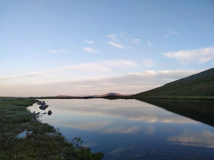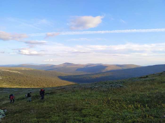 👉 Поднявшись на очередной не большой, но очень затяжной и от того вытягивающий силы перевал, нам открылись долины гор Отортен и Моттевчахль. Выглянуло окончательно солнце и мы прилегли на мягком ягеле, насладиться моментом и посмотреть на красоту.