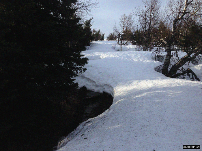 На дворе экватор наших похождений. Естественным образом весь этот день пошёл по джигурде. Снег меж деревьев перестал нас выдерживать, мы то и дело что ворочились, преодолевая метр за метром. Даже пытались делать небольшие крюки и идти чуть выше по плоскогорью, но и там было не легче, еб**ий куст не давал проходу.