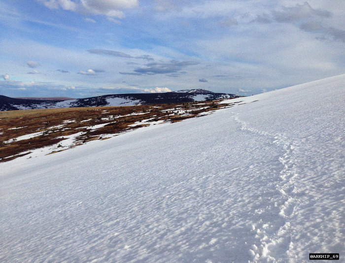 Этот день вышел таки продуктивным, прошли около 23 км, наш градус азарта немного повысился. Говоря ранее, что сверху на плоскогорье снега не так уж и много, мы ошибались, местами тут такая же еб***на, такая же тропёжка..