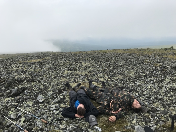 Проснулись от сильно моросящего дождя в перемешку с ветрищем, забили болт продолжили спать. Валялись до обеда, эх если бы не поезд так бы и не вылазили к ***утой стихии. Начали медленно собираться, деваться было некуда, пока собирали палатку вымок я было дело до трусов, горизонтальный дождь и ветрище сбивающее с ног, ммм прям услада Северного Урала. ⠀