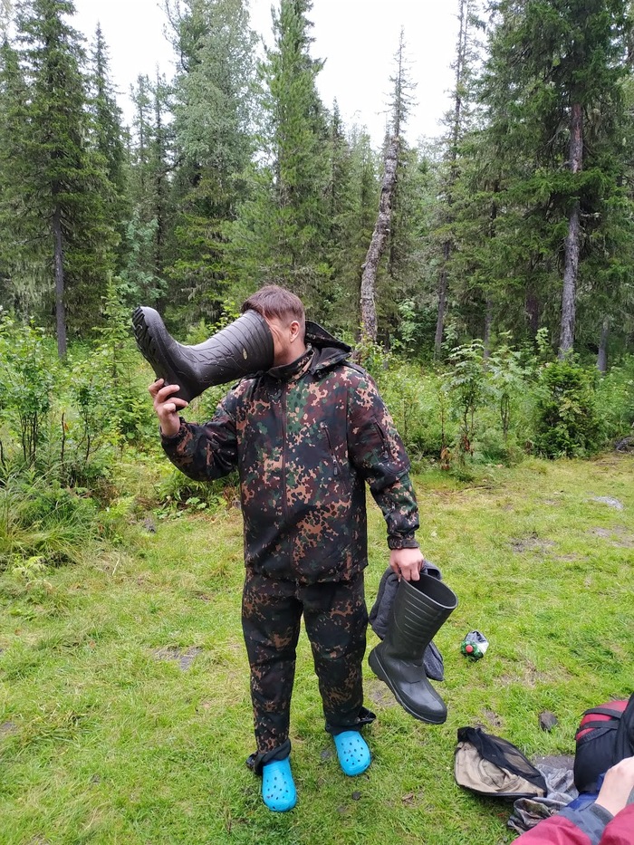 👉 Этот план сработал, хотя медведь чуть не нарушил все..) Мы с Денисом чуть ушли вперед и дистанция была минут 10 между нами. В один момент, на привале нас быстро нагнали Олеся с Иваном, они почти бежали и стучали ложками по кружкам😁. На нашу тропу вышел медведь и ребята встретили его в 15 метрах впереди. Он убежал в лес, но ребята заметно добавили в скорости и больше от нас не отставали.