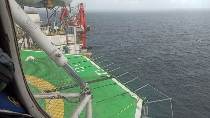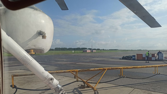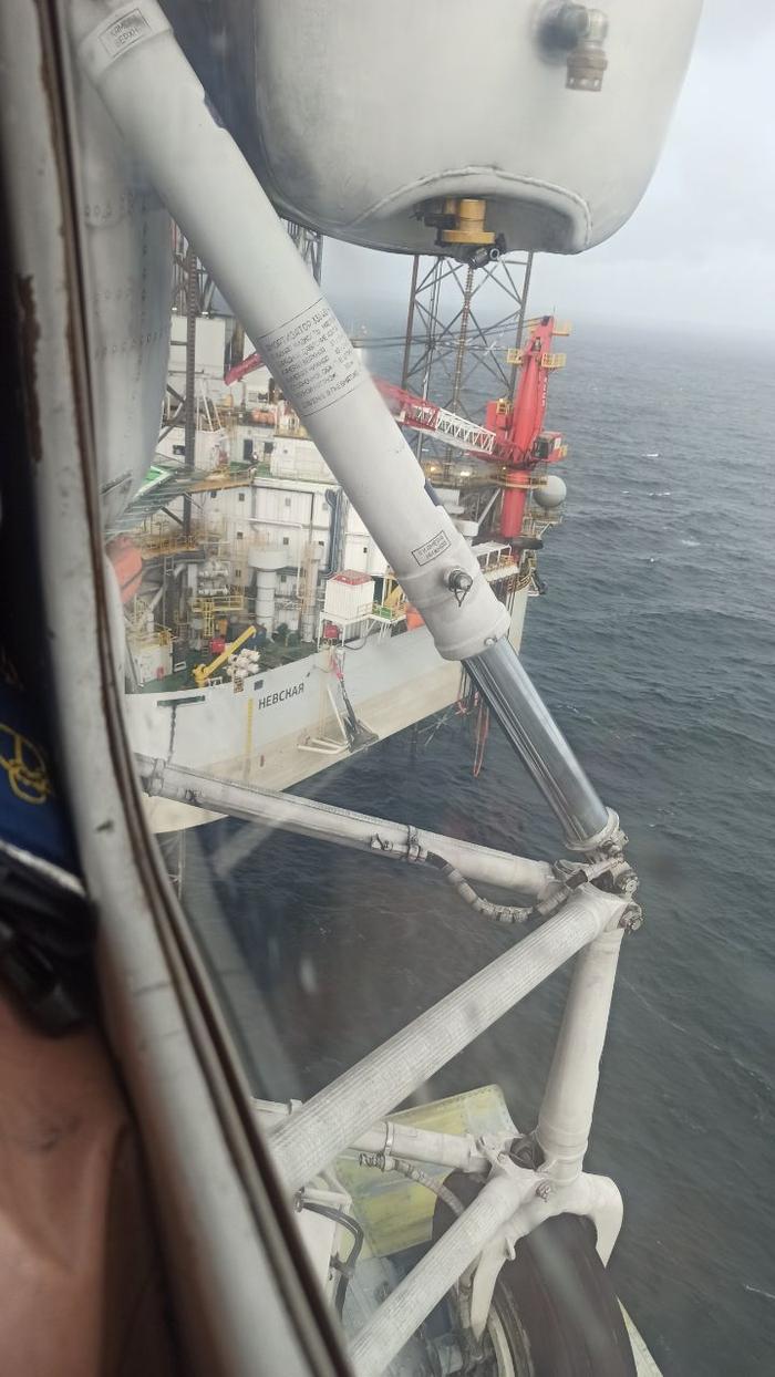 Итак, практически вытянув счастливый билет (на вертолет), и пройдя вполне стандартный досмотр в аэропорту Храброво, наша группа специалистов широкого профиля, на вертолете компании Лукойл, вылетела на самоподъемную плавучую буровую установку (СПБУ) «Невская».