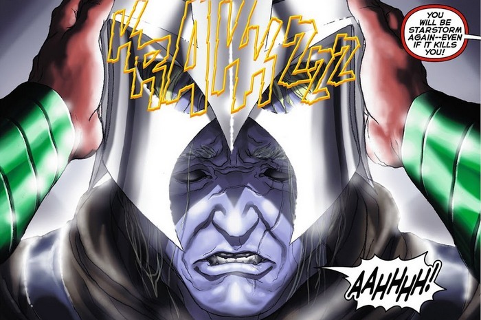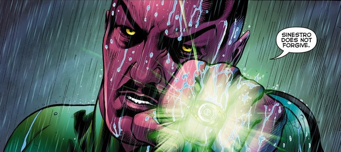 Разумеется, Синестро не принимает «нет» в качестве ответа, силой напяливает шлем на голову Старшторма, и тот, плача и не желая, ведёт Синестро по следам Лиссы Драк. Лисса же пытается затянуть Синестро и Старшторма в Чёрную Книгу, чтобы подпитаться их историями – и видит, что Старшторм был инопланетным аналогом супергероя, пока Синестро не отпинал его так, что на него стало жалко смотреть. Синестро же видит альтернативные версии будущего – где у него на пальце кольцо племени Индиго, или Хэл Джордан погиб, или Стражи Вселенной убили всех Зелёных Фонарей, или Гансет обзавёлся белым кольцом. Чтобы обезвредить Лиссу, Синестро срывает шлем со Старшторма и бросает в неё. Происходит взрыв – недостаточно мощный, чтобы Лиссу убить, но достаточно для того, чтобы вырубить её. Помянув незлым словом Джордана, Синестро сваливает. Хэл же просыпается в постели с Кэрол – и ВНЕЗАПНО ему на палец надевается созданное Синестро зелёное кольцо. «Ну здравствуй, Джордан. Ты мне опять нужен. Возражения, как и прежде, не принимаются!».
