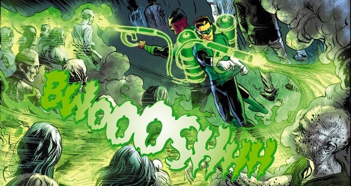 Одну Темнейшую Ночь закончили, вторую лучше даже не начинать! Так что на очереди комикс Green Lantern #12. Итак. Чёрная Рука кушает китайский хавчик в окружении мёртвых родственников, и тут у него в гостиной появляются Хэл Джордан, Синестро и Чёрная Книга. Какая встреча. Чёрная Рука тут же хватает книгу – и выпадает в осадок, увидев, что все страницы исписаны посланием «Хэл Джордан тебе не враг». Не веря книге, Чёрная Рука нападает! Вернейший способ победить Чёрных Фонарей – атаковать их двумя кольцами разных цветов одновременно. Если бы Синестро всё ещё носил жёлтое кольцо, проблемы бы не было, а так она есть, так что Хэл пытается вызвать на помощь Кэрол (она ведь всё ещё может превращаться в Звёздного Сапфира). Увы, чёрное кольцо создаёт помехи, и Чёрная Рука поднимает всех мертвецов на погосте!