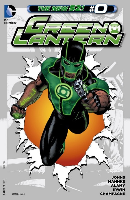 Сегодняшнюю лучистую подборку завершит комикс Green Lantern #0 (ага, такая нумерация, в рамках особого ивента) за ноябрь 2012 года, с историей от Джоффа Джонса и рисунком от Дуга Манке. В пропущенном ежегоднике Стражи Вселенной освободили Первого Фонаря, которого стерегли древние мальтусианцы. С его помощью Стражи временно вкачали дофига силы в Чёрную Руку и тот, похоже, убил Хэла Джордана и Синестро. А сейчас предлагается обратить внимание на совершенно другого человека. В сентябре 2001 года исламисты уничтожили Всемирный Торговый Центр. С тех пор семья Саймона База, парня арабских кровей, постоянно сталкивалась с притеснениями и нападками. Саймон вырос угонщиком (он честно работал на автозаводе, но тот закрылся, так что Саймон начал угонять автомобили, чтобы семья не голодала). И вот сейчас он угоняет фургон – и видит, что в него заложена бомба. «Ну ппц, приплыли», думает Саймон. Завещав свой схрон сестре на всякий случай, он направляет фургон в пустое здание, а сам в последний момент выпрыгивает.