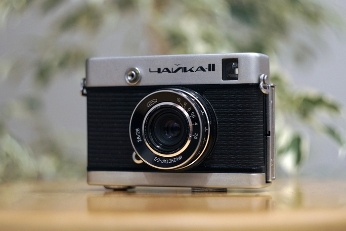 Раздобыл в свою коллекцию полукадровый фотоаппарат Чайка-II. Полукадровый - значит, что вместо стандартного для 35мм плёнки кадра размером 24х36, он делает вертикальный 24х18. Соответственно, таких кадров на плёнке помещается вдвое больше. Фотоаппарат шкального типа, то есть дистанция фокусировки выставляется по шкале на объективе, что требует определённой сноровки, либо каких-нибудь вспомогательных аксессуаров, типа лазерного дальномера.