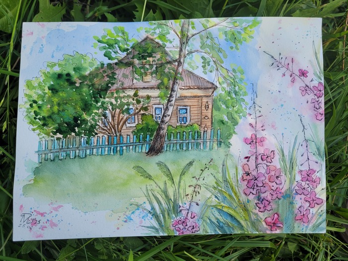 Домик написала на пленэре. Приезжала в отпуск в родную деревню Кожевниково.