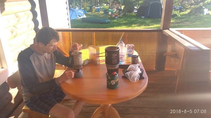 В общем, оставили мы нашу джигитку еще на полчаса спокойно попускать слюни в спальник, а сами пошли на террасу варить кашку.
