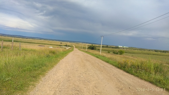 Тем временем туча подходила всё ближе, а до кафешки, где мы собирались покушать, оставалось еще 3 км. Мы решили рвануть, успеть до дождя и и пережрать его в теплом помещении с тарелкой борща)