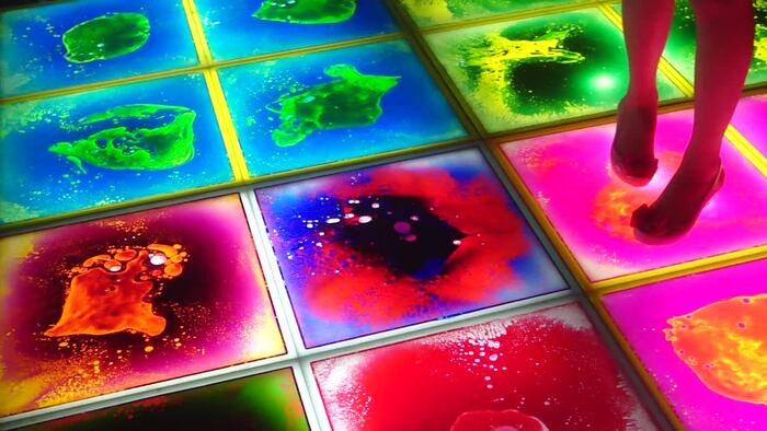 Благодаря современным технологиям плитки выпускаются с живописными рисунками. Красящие вещества, используемые при изготовлении интерактивной поверхности, являются безвредными. При наступлении на поверхность, происходит сжатие капсулы из геля – рисунок под бесцветным слоем оживляется.