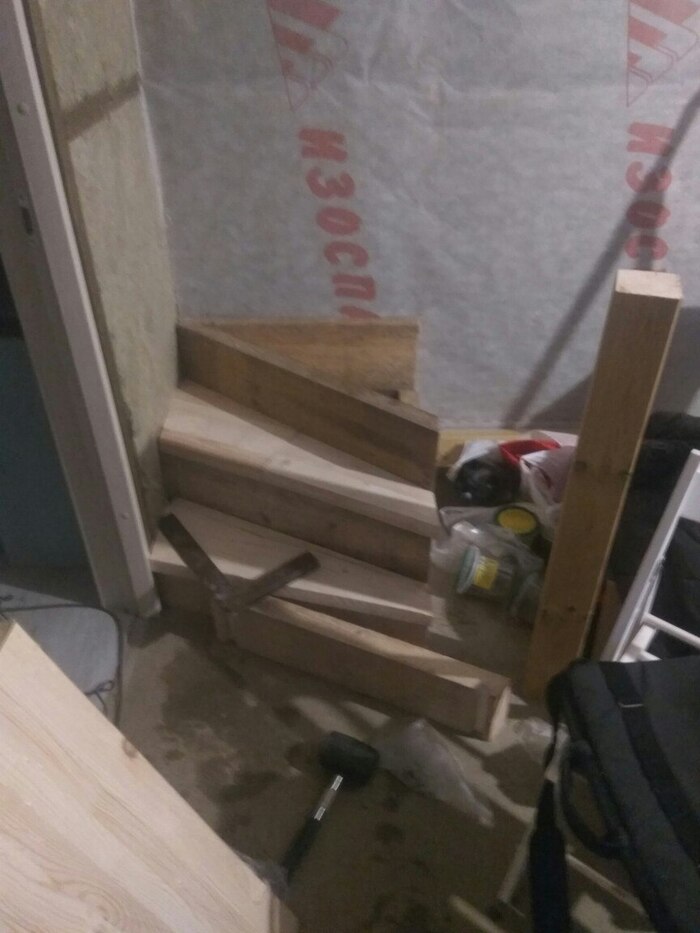 Ну так вот, конструкция лестницы такая, какая она есть. Тот лишь факт, что её более менее удалось вписать в и без того маленькие габариты - уже успех. Я бы даже не сказал, что она сильно крутая и неудобная. Пока её "проектировал", почитал много инфы по лестницам. Сделана она, конечно, не по правилам, но уж что имеем.