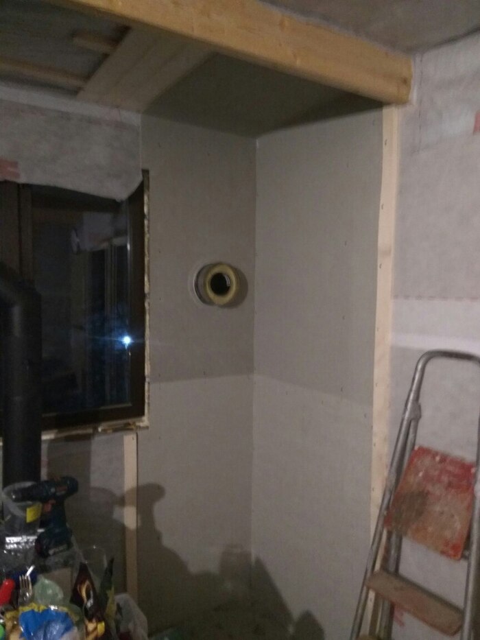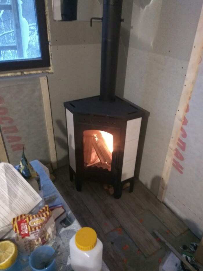 Ниже будет немного фоток установки печки. Вкратце - крышу посреди зимы решили не дырявить, да и печка встала прямо у наружней стены, поэтому и дымоход решили через стену пустить. В итоге в середине декабря, если не ошибаюсь, была первая протопка.