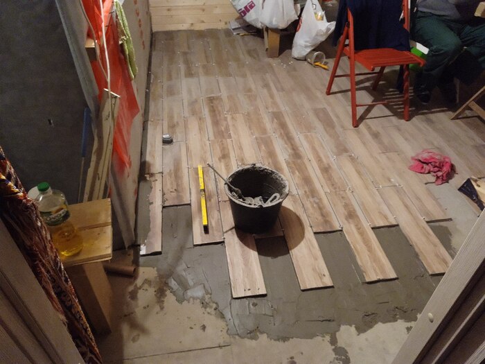 И потихоньку по выходным укладывал плитку. В том объёме, который позволял потом перешагнуть, не наступив на свежеуложенную. Быт в таких условиях вести было тяжело.