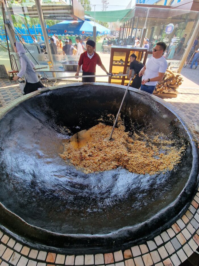 Национальная еда – плов, и ни один праздник не обходится без него. Оказывается нужен особый навык готовить плов объемом более 3-4 кг. И такой объем готовят только мужчины. Все что меньше такого казана называют «казанчик».
