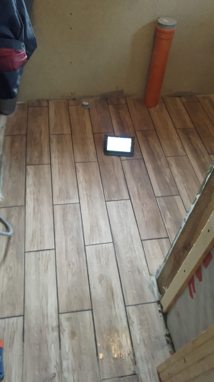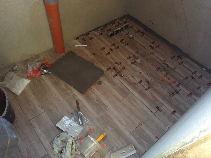 Как-то так с полами было наконец-то покончено. Не знаю, как плиточники умудряются быстро работать, для меня это всегда долгая история. Справедливости ради стоит отметить, что я возился и на улице. К тому моменту как раз установили лос.