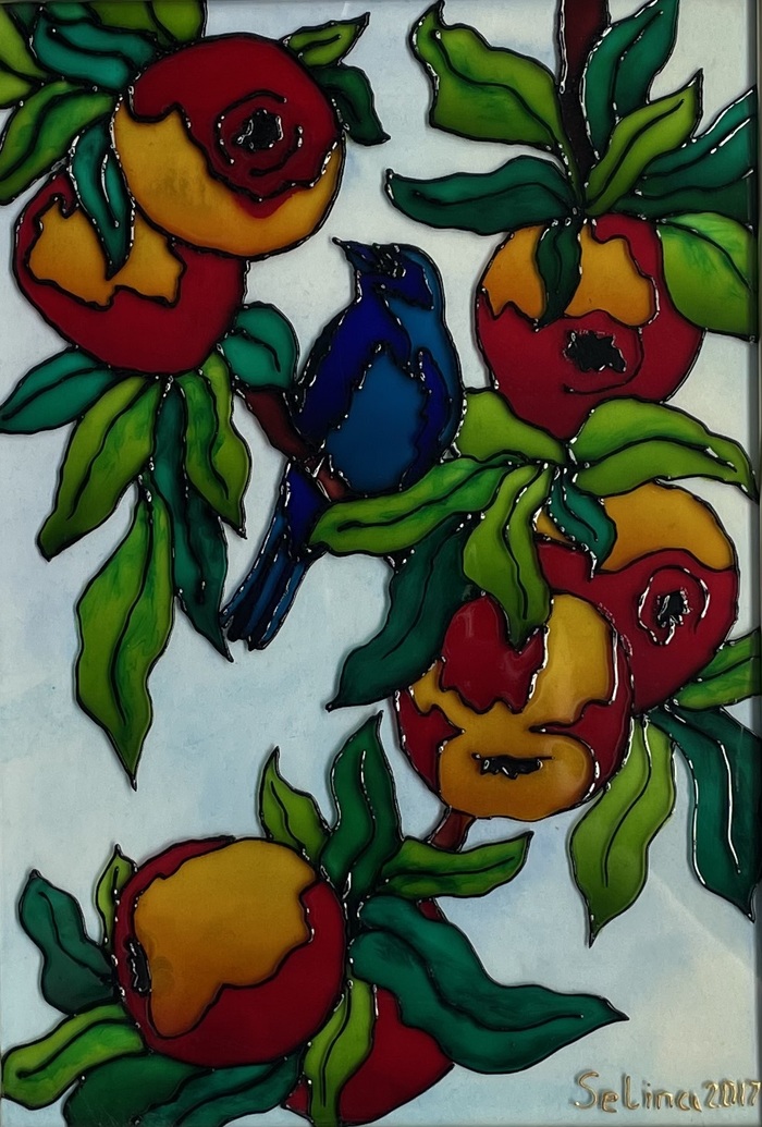 "Ветка лимона"/21х30см/стекло,витражная роспись/2017г.