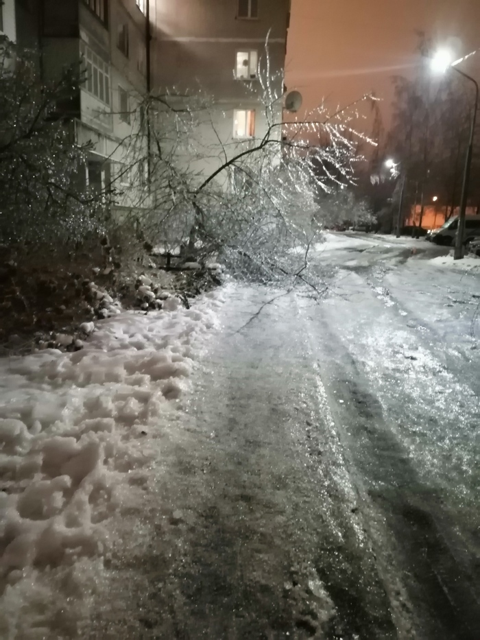 Как видите - еды нет! На полках какие то непонятные орехи, плавленые сыры в банках и всякие специи. Всю нормальную еду купили и сидят по домам. Как говорится "кто успел - тот и съел". Сегодня уже постепенно температура идёт вверх и снег начал таять. Но из-за ночного гололёда пока еду во многие магазины просто не подвозят. Коллапс логистики.