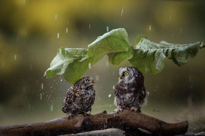 Пернатые обитатели леса также находят способы укрыться от дождя. Они прижимаются к стволам деревьев, укрываются под большими ветками или в густой листве, ожидая, когда непогода утихнет.