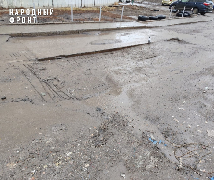 Из разрушенных плит торчит арматура. Автомобили протыкают колеса. Осенью и весной, когда здесь образуются гигантские лужи и грязь, сюда даже не ездят машины скорой помощи! Дети по пути в школу перепрыгивают через лужи, поскольку тротуара тут нет.