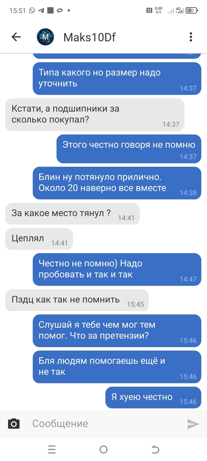 Вот помогаешь людям просто так. А в итоге ещё и претензии какие то) Как потом не стать гадким и злым?) Пишет мне тип на Драйв 2. Спрашивает как разбирать кпп и все такое. Не суть, рассказал все что мог и все что знал. Итог вот такой) Всю переписку не скидываю, смысла нет. Я там честно от души помогал чем мог и рассказывал все что знал. В итоге чел недоволен. Ну что за люди, а?
