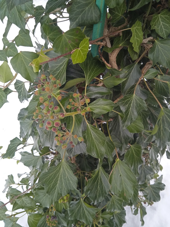 Плющ процветает, то и дело выпускает воздушные корни какой-то не реальной длинны (некоторые более 3-5 см.