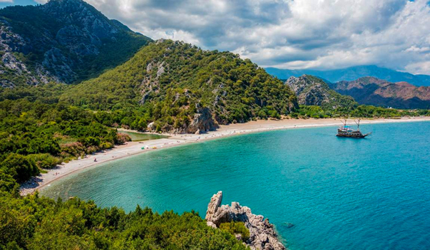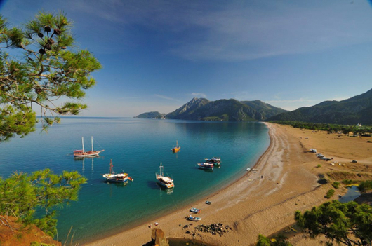 Один из множества пляжей Турции, награжденных Голубым флагом. Это тихое и уединенное место, окруженное горами. Пляж находится недалеко от знаменитого пляжа Олимпос и является домом для головоногих черепах, которые откладывают яйца в летние месяцы.