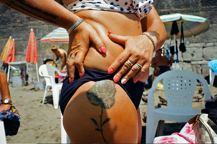 Также в глаза бросаются веревки, протянутые в воду: это говорит о том что купальщики, за редким исключением, не умели плавать.