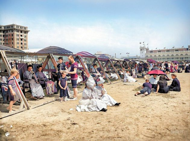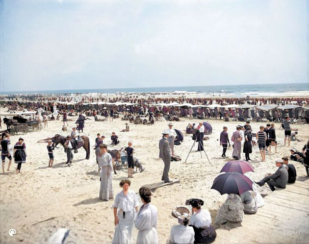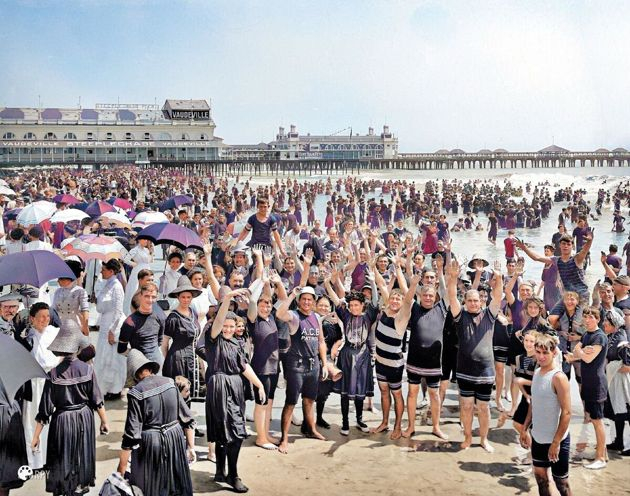 Уникальные фотографии пляжной жизни соединённых штатов Америки сделанные с 1904 по 1913 год.