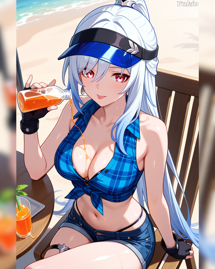 Контент нейросетей Anime Art Honkai: Star Rail Jingliu (Honkai: Star Rail) Лето Море Пляжный отдых Длиннопост