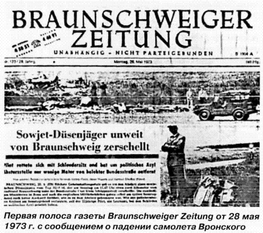 Беглецу явно благоволили звезды. Через 23 минуты он уже добрался до границы с Западной Германией. Вронский осознавал, что посадить машину, как полагается, не сможет и катапультировался. Опять же удачно. Приземлился угонщик около города Люнебург рядом с федеральной автотрассой. Сбежались местные жители, которые подумали, что самолет потерпел крушение.