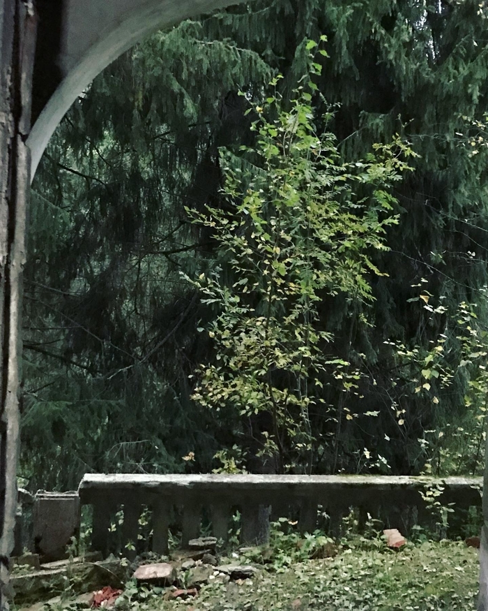 Сейчас от виллы уже немного осталось. Это, конечно, не Гостилицы, но крыша обвалилась и уже выглядит как миниатюрный садик с грибами, елками, березками и узкими тропками между ними. Кирпичная кладка остова 3 этажа выглядит хлипкой и крошится в руках. Часть лестниц обрушена, в полу виднеются частые провалы и дыры. Но зато местами сохранилась напольная плитка и изящный балкон с балюстрадой.