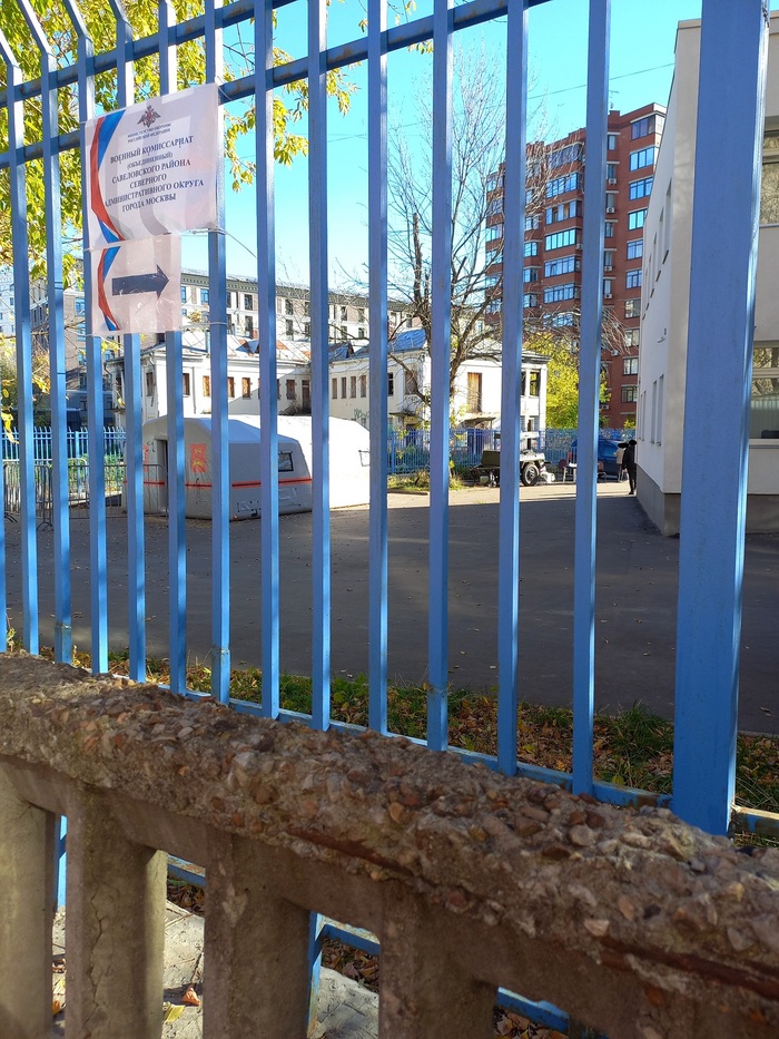 Пошел в сторону Савеловского овк - который мой.Сначала решил зайти к военкому,что бы он подтвердил не призываемость 998/999 - но прошел мимо,он скорее выдал мне ту же повестку под роспись на тот же сборный пункт.У военкомата несколько солдат росгвардии с оружием и пару человек очереди.Автомобиль ГАИ с 1 сотрудником и 2 автобуса ПАЗ.Потому уже я допер,что это так называемый "трансфер" до сборного пункта о которых читал. Т.к я пока не расписывался нигде - мог по пути передумать заходить и пошел дальше..Сборный пункт на который указывала повестка там же за м.Белорусская,где на ул.Бутырский вал находится "основной" военкомат.Ну не там же.Минут 20 шел.