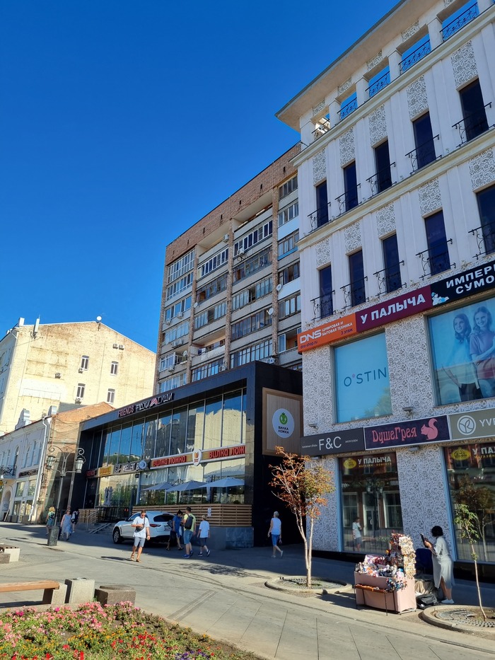 Но без ложки дегтя, конечно, не обошлось. Ленинградская улица, как и весь центр в целом, довольно плотно погрязла в хламе бесвкусных рекламных вывесок, встречаются разрушенные дома, ужасающий новосторой в виде кошмарных пристрок к историческим зданиям и просто новые ТЦ. Это, конечно, сильно портит атмоферу города.