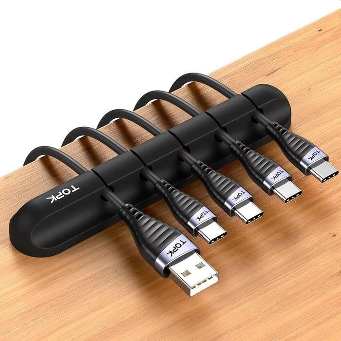 Удобная штучка выполненная из плотной гибкой резины, поможет организовать укладку разнообразных USB-проводов от периферийных устройств и гаджетов. Провода просто вставляются в прорези и удерживаются оконечными разъемами не путаясь и не падая со стола. Аксессуар можно закрепить на двухсторонний скотч в любом удобном месте стола, монитора или другой поверхности. На странице товара есть три варианта по количеству фиксируемых проводов: на 3/5/7 штук. Цвет: черный.