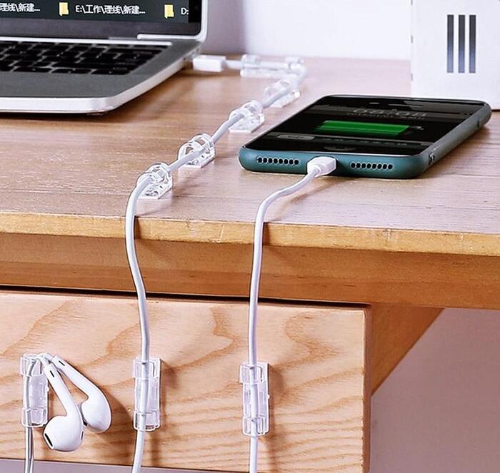Пожалуй один из самых удобных органайзеров для проводов мобильных устройств, которые постоянно приходиться перемещать с мест на место и таскать с собой. Основная база органайзера фиксируется в нужном месте на двухсторонний скотч, например, на боковой панели стола, а магнитные элементы надеваются на кабели (зарядные, для наушников итд) и в нужный момент просто примагничиваются к базе и удерживаются на ней. Поэтому кабели всегда будут рукой, но и не будут мешаться.
