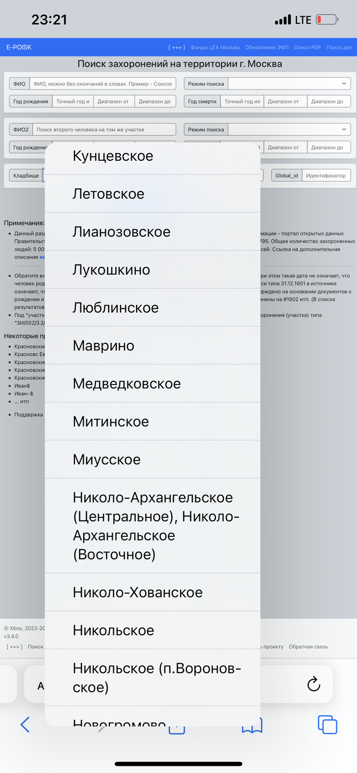 Весь список скринить не стал. Сам так как испытываю любовь к некрополям, очень легко там залип, нашел могилы своих репетиторов, знакомых, учителей… причём по карте отмечают с точностью до +/- 2-5 метров. Проверил на могилах родственников.