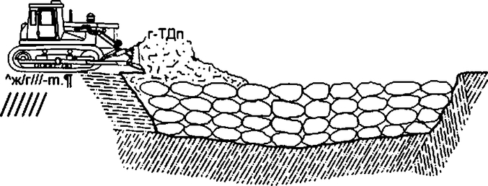 Рисунок А.9 — Операция установки в обваловку сооружения, предназначенного для срочного захоронения трупов, устройств для абсорбции и нейтрализации радиоактивных, опасных химических веществ и биологических агентов, образующихся при разложении трупов