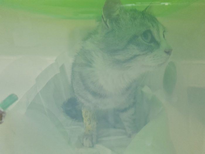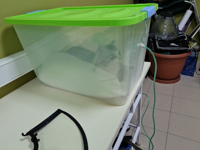 Бегом в клинику (минут через 15-20 уже были там), там уже сказали, что кот скорее всего подавился, во время рвотного рефлекса "неправильно" вздохнул и кусочек колбаски мог попасть в трахею. Поставили противоотечное и оставили на кислородной камере, чтобы не развился отек легких. Пару дней побудет в клинике под наблюдением, на всякий случай. Хоть и сказали, что с котом должно быть все хорошо, в целом он активен, но риск отека бывает всегда.