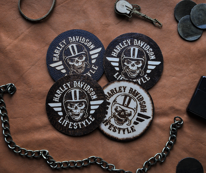 – Оптимизированы под лазерную резку – Круглая форма – Стильно выглядят на любой продукции, как принт на футболку, зажигалку, брелок, сумку и т.д.
