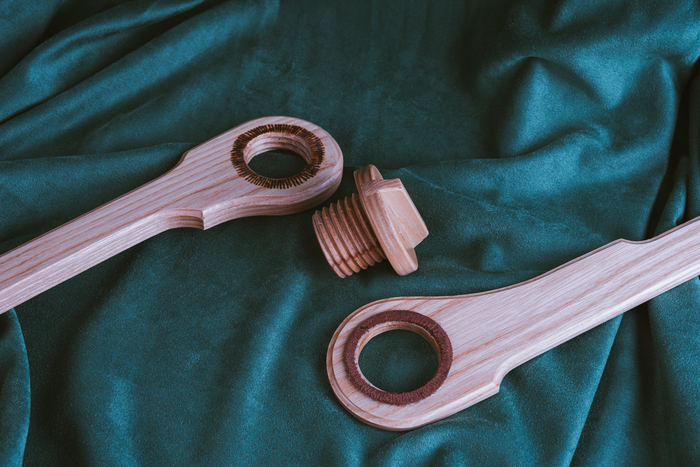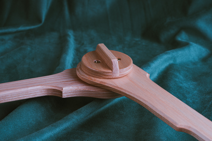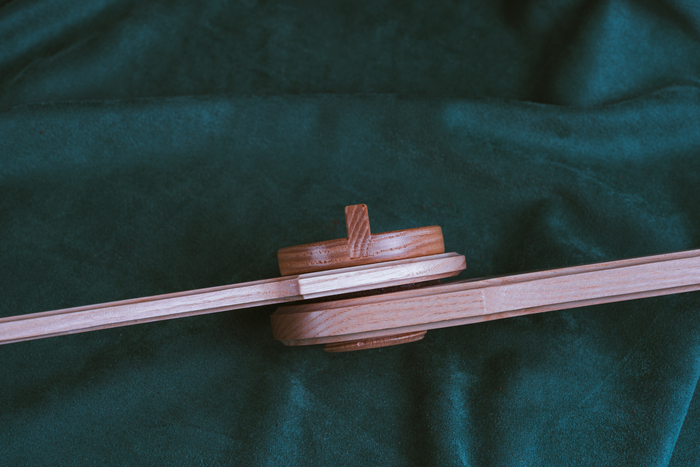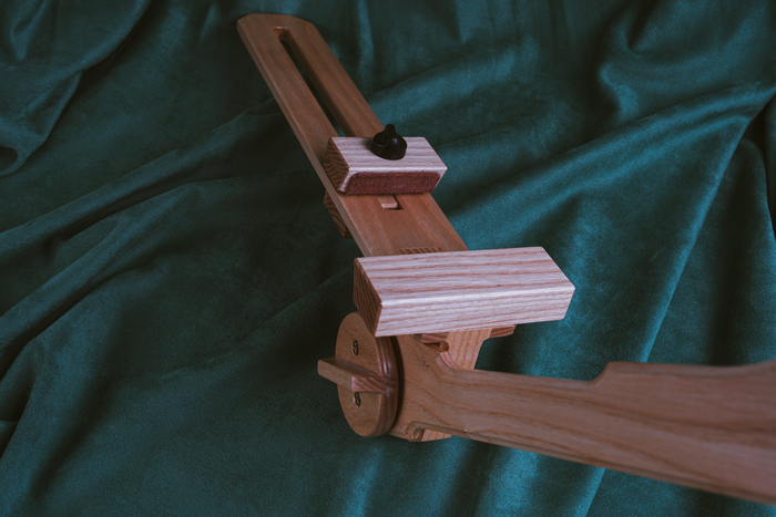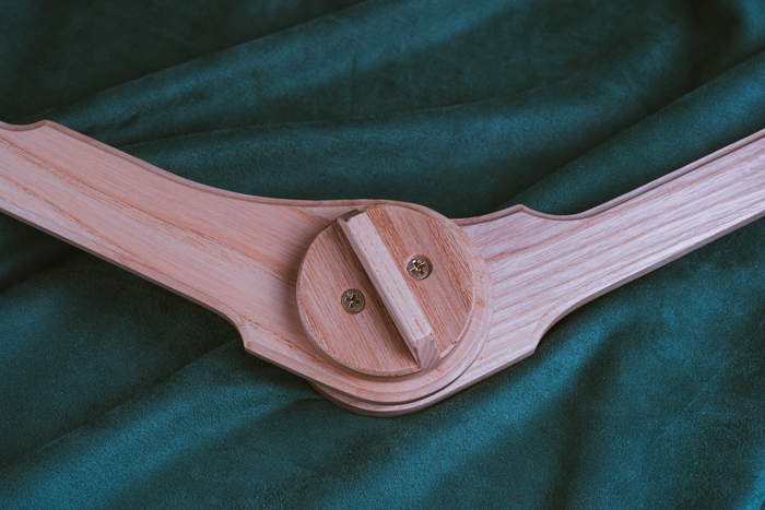 Материал - ясень, винты из бука, завертка подвижного фиксатора сверху - из черного граба. Отделка - прозрачное масло для мебели borma.