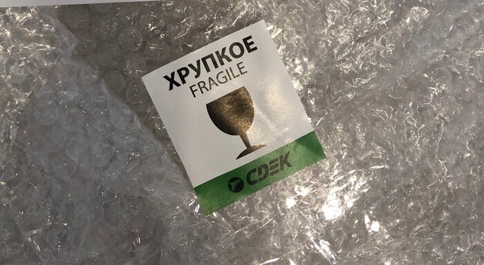 Как-то мы пережили пандемию и продолжили работать. Было то больше заказов, то меньше. Но, оно не напрягало, мы что-то делали, как раз начали появляться мостики в другие страны. Среди прочего оказалось, что один из сложных моментов - это доставка. Например, такая наклейка никак не влияет на то, как обращаются с посылкой:
