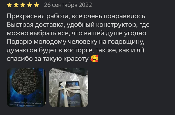 Наша работа встала на несколько месяцев, ведь без координат невозможно построить карту неба. Была мысль перейти на Яндекс, что лишало нас глобальности. К тому же Яндекс был явно дороже. В общем, пришлось искать друзей, кто позволил нам пользоваться своим рабочим аккаунтом. Так и работаем до сих пор. Возобновили рекламу, максимально перешли на аутсорс. И сегодня уже четыре года с момента запуска, но всё ещё не прогорели. В очередной раз как-то выкрутились, значит. И пока что всё идёт без какой-либо динамики, что само по себе хорошо. Хотелось бы больше грандиозного, конечно. Кучу идей, реализаций, но сейчас просто приятно осознавать, что в твоей жизни появилось что-то, что ты сам сделал со своими товарищами, что в итоге работает и приносит хоть немного позитива нам, а что ещё приятнее - тем, кто у нас делает заказы)