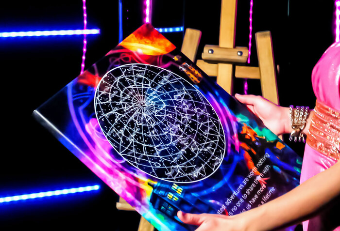 Одна из основных задач состояла в том, чтобы генерировать картинки со звёздным небом в высоком разрешении на основании запроса заказчика - как это всё будет выглядеть, какого размера и всё такое. То есть исключить работу дизайнера или того, кто будет вручную менять схему звёзд, вставлять в макет, менять надписи, пропорции под размер и прочее. Вместо этого мы просто берём и скачиваем файл для печати.