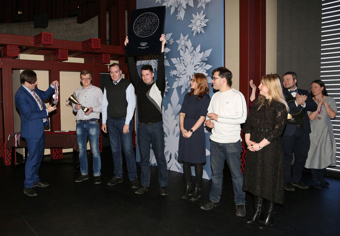 На этой самой конференции были типа спецы - какие-то успешные люди, которые делились мнением. Почти каждый, видя наше дело, хватался за голову и говорил "Как!? Как это можно продать?". А я и сам не понимаю) Однако, возникла пара интересных знакомств. Там нас пригласили на квиз "Игроки" поучаствовать, например. Когда мы приехали, по итогу игры оказались в стабильном центре, было пару десятков команд. А ведущий со сцены вручал победителям звёздные карты и говорил, что спонсоры подарков - это мы, приятное.