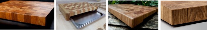 Торцевая разделочная доска прекрасно реставрируется. Вот, тут - не поспоришь. Да! Только, откроем тайну: любая деревянная доска – торцевая и обыкновенная – «они из одного и того-же материалу», - как было сказано в одном советском анекдоте. И доска, бывшая в более-менее адекватной эксплуатации, прекрасно реставрируется. Любая. Варианты следующие, они применимы к любой из досок: при мелких порезах рабочей поверхности производится шлифовка и доска, вновь покрывается защитными составами. При сколах и выщерблинах – та же шлифовка, но съём материала больше. Если – же, доска была долго в эксплуатации и бывало всякое, либо образовалась «линза» – выборка в центральной части, либо произошло коробление поверхности, тогда мастер предложит убрать сей дефект на рейсмусе (калибровальный станок) – доска станет тоньше, но следы времени и продуктивного труда будут удалены. Только, в случае с торцевой доской, это будет дороже. Почему? При удалении верхнего торцевого слоя с доски, срезание волокон будет происходить в поперечном направлении, ввиду чего, создается большее сопротивление резанию. Это, в свою очередь, создает излишнюю нагрузку на станок. Нехорошо. Это понимает мастер и, непременно, вспомнит про амортизационный фонд, призванный сохранить оборудование в исправном состоянии и, даже, обновить его со временем.