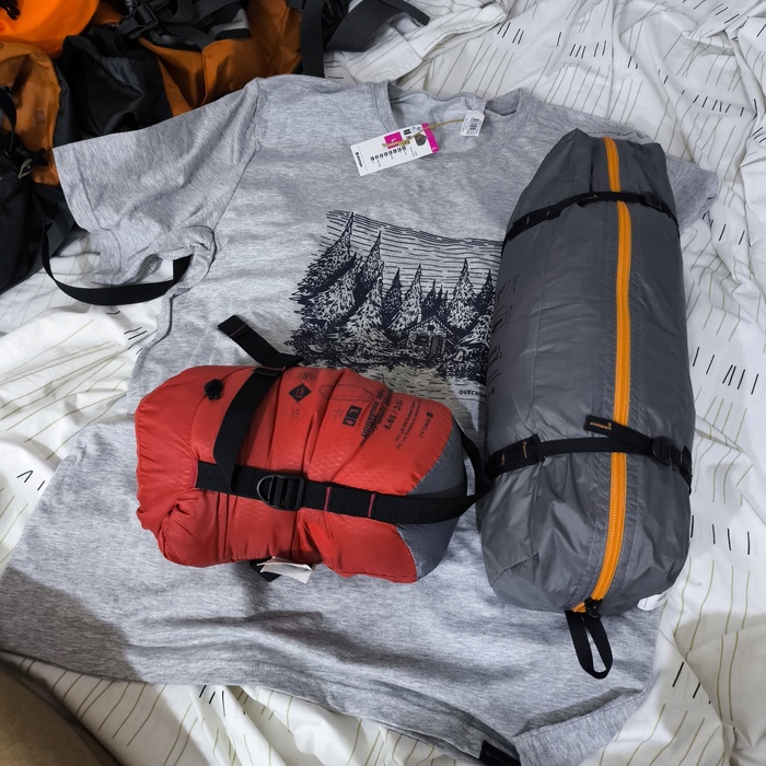 Как и ожидалось, на футболках я не остановился. Тут, как говорится, Остапа понесло... Решил, что все же пришло время сменить теплый бивуак на лёгкий спальник с одноместной палаткой. Неожиданно быстро свернул в субтропики, так что лучше не тянуть.