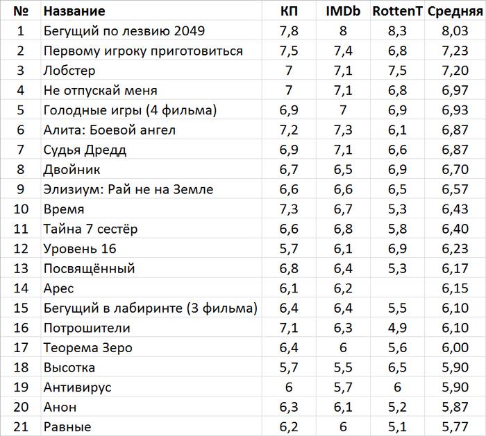 Таблица с рейтингами Кинопоиска, IMDb и Rottentomatoes.