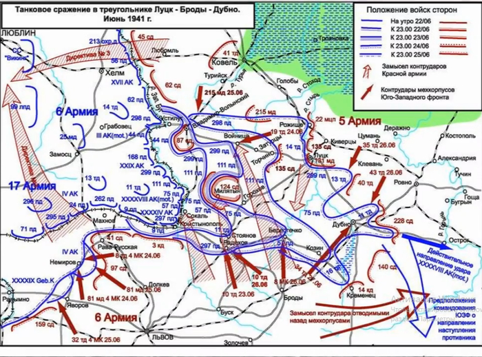 Здравствуйте Уважаемые читатели!!! В конце июня 1941 года в треугольнике Броды-Ровно-Луцк разворачивается одно из крупнейших танковых сражений в истории, а может и самое крупное. По врагу, имевшему более 700 танков, под прикрытием авиации с артиллерией и пехотой наносят удар от 1.5 до 3 тысяч советских бронированных машин по разным оценкам. Точно сказать сложно сколько было, немцы записали наши потери в 2600 машин, включая брошенную технику из-за поломок, отстутвия горючего и т.д. Ее таковой вообще могло быть больше половины. Ну да ладно, это не основная мысль публикации. Так вот, мех корпуса, гордость страны, наносили контрудар, пытаясь локализовать прорыв немцев, при этом порой действуя без прикрытия с воздуха и артиллерии, да и без пехоты тоже. С юга 26 июня наступали части 8 МК Рябышева Дмитрия Ивановича, цель которого была выйти к Дубно и встретиться там с идущем на встречу 19 МК Фекленко Николая Владимировича, тем самым отрезая авангард немцев в лице 11 ТД.