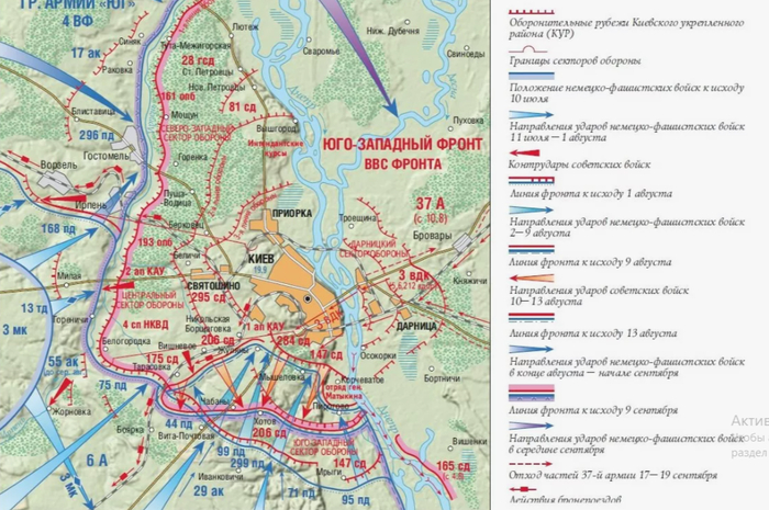 При этом отвод войск северней привел к тому, что враг взял переправы северней, у Окунинов, через Днепр, а Киевский укрепрайон стал оконечностью выступа, который активно формировался. А после последовал смертельный удар немцев, правда, не с севера от Гудериана, которого развернули из района Смоленска, а с юга в основание выступа. Незамеченная вовремя переправа танковой группы Клейста позволила прорываться ей навстречу Гудериану, а ненастная погода не позволила Красной Армии задействовать свои ВВС. С этого момента судьба Киева была решена, в котле оказалось около 500 тысяч человек. Войска оставляли рубежи, на которых столько сражались и начинали отход на противоположный берег Днепра. Продлившаяся до 19 сентября оборона Киура мало того, что связала врага, главное - страна получила время на эвакуацию промышленности с востока республики, которая ехала на новое место дислокации, где будет ковать меч победы. А невозможность овладеть Киевом в начале июля 1941 стала ещё одним тревожным звоночком, который повлиял на отказ от изначальной тактики Барбаросса и привёл к необходимости разворота войск со Смоленского направления на юг, что дало передышку на Московском направлении.В завершение отмечу, что уже во время освобождения Киева в ноябре 1943, было массовое примение тральщиков, которые позволяли проходить минные поля танкам, и да это обескуражило врага, у них таких не было. А у меня на этом всё. Еще больше фактов на канале "Наша история это Гордость" в ТГ. Спасибо за внимание. До свидания!